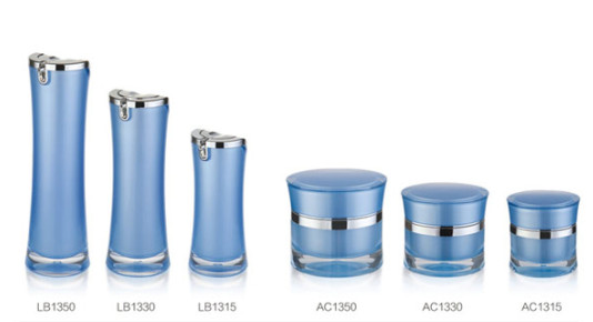Golden Yellow Blue Cosmetic Round Waist Acrylic Lotion Bottles